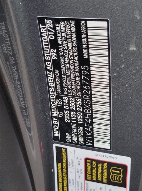 - VIN : W1KAF4HBXSR267795