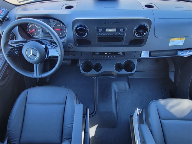2025 Mercedes-Benz Sprinter 2500 Cargo 144 WB 14V/280 A Alternator, 16" x 6.5J Steel Wheels, 2 Additional Master Keys, 3.923 Axle Ratio, 4-Wheel Disc Brakes, 5 Speakers, ABS brakes, Air Conditioning, AM/FM radio, Armrest for Driver's Seat, Armrest for Front Passenger's Seat, ATTENTION ASSIST, Blind Spot Assist, Bodyside moldings, Brake assist, Co-Driver Thorax-Pelvis Sidebag, Door-Mounted Assist Handles, Driver & Passenger, Driver Convenience Package, Driver door bin, Driver's Seat Mounted Armrest, Driver's Seat Occupancy Sensor, Dual front impact airbags, Dual front side impact airbags, Electrically Folding Exterior Mirrors, Electronic Stability Control, Emergency communication system, Exterior Parking Camera Rear, Front anti-roll bar, Front Bucket Seats, Front Passenger Airbag, Front wheel independent suspension, Fully automatic headlights, Heated door mirrors, Heated Driver's Seat, Heated front seats, High Roof, Hinged Lid for Left & Right Storage Compartments, Hinged Lid for Storage Compartment, Illuminated entry, Low tire pressure warning, Maturin Fabric Upholstery, No Factory Installed Flooring, Opening to Side Wall Rear Doors, Outside temperature display, Overhead airbag, Overhead console, Passenger door bin, Passenger seat mounted armrest, Power door mirrors, Power steering, Power windows, Radio: Standard, Rain sensing wipers, Rear anti-roll bar, Remote keyless entry, Sideguard Assist, Speed control, Standard Driver Seat, Standard Front Passenger Seat, Steering wheel mounted audio controls, Tachometer, Tilt steering wheel, Traction control, Variably intermittent wipers, Wood Floor w/6 D-Rings.