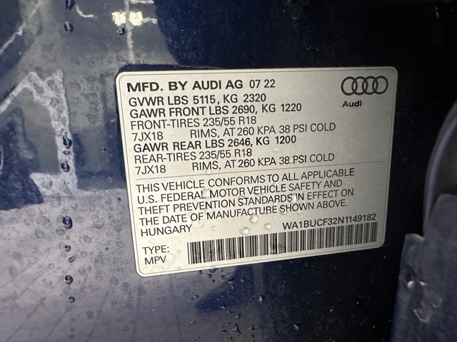 - VIN : WA1BUCF32N1149182