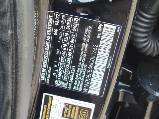 - VIN : W1N0G8EB4NG081662