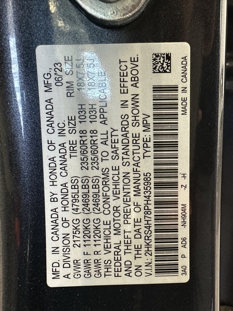 - VIN : 2HKRS4H78PH435985