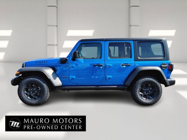Hydro Blue Pearlcoat 2023 Jeep Wrangler Willys 4xe 4D Sport Utility 4WD 2.0L I4 DOHC 8-Speed Automatic