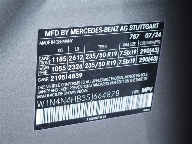 - VIN : W1N4N4HB3SJ664878